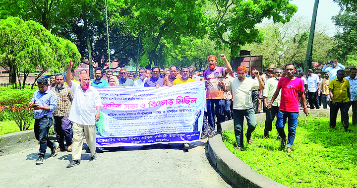 THAKURGAON: Workers of Thakurgaon Sugar Mills hold a protest march and meeting demanding permanent job adjustments, skilled worker development, and immediate payment of 15 per cent wage benefits, warning of a larger movement if demands remain unmet within 10 days.