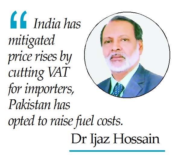 He highlighted that while India has mitigated price rises by cutting VAT for importers, Pakistan has opted to raise fuel costs.
