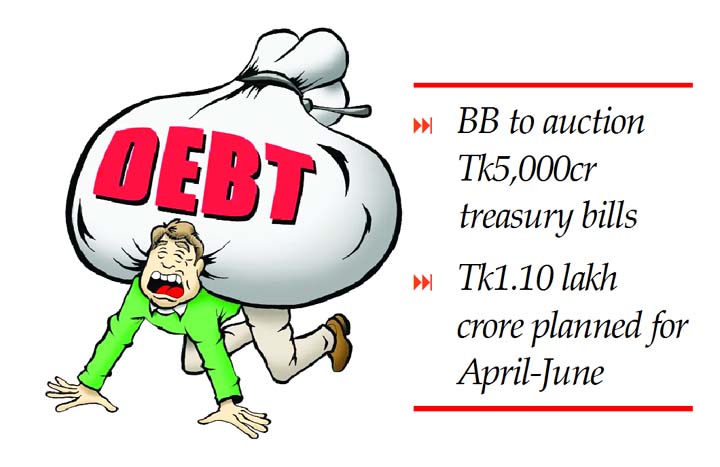 For the April-June quarter, the government plans to borrow Tk1.10 lakh crore in short-term funds through treasury bills.