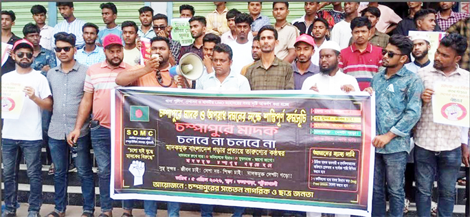 KALAPARA (PATUAKHALI): A human chain and protest rally was held in coastal Kalapara upazila of Patuakhali district in front of the Kalapara Press Club on Sunday demanding for strict legal action against drug dealers and drug users.