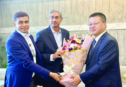 Chinese Ambassador to Bangladesh Yao Wen meets the Minister for Water Resources, Shahid Uddin Chowdhury Annie at the Parliament Secretariat in the capital on Tuesday. State Minister Farhad Hossain