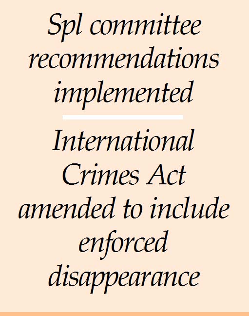 While presenting the amendment to the International Crimes Tribunal Act, the law minister noted that the revised legislation includes enforced disappearance within the definition of crimes against humanity.