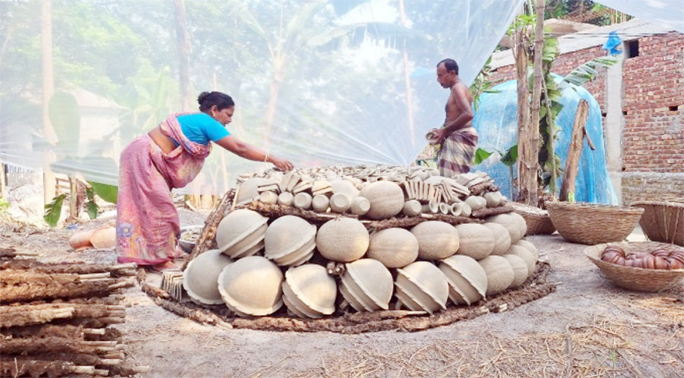 The traditional pottery industry in the haor areas of Kishoreganj is now facing an existential crisis due to the dominance of plastic and melamine products. Once it was an integral part of rural life, the industry is now on the verge of extinction. Potter families in the Palpara area of Nikli Haor Upazila are living in extremely difficult conditions.