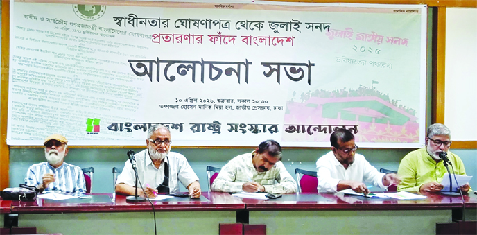 Bangladesh State Reform Movement organises a discussion titled "From the Proclamation of Independence to the July Charter: Bangladesh in the Trap of Deception" at the National Press Club in the capital on Friday, marking Proclamation of Independence Day.