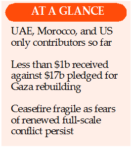 The funding pledges were also meant to pay for the activities of a nascent National Committee for the Administration of Gaza (NCAG), a US-backed group of Palestinian technocrats intended to assume control of Gaza from Hamas.