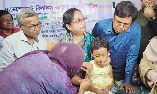 BARISHAL: BCC Administrator Advocate Bilkis Akhter Jahan Shirin inaugurates a campaign on Sunday at Mallika Kindergarten in the city. Measles-Rubella Vaccination Campaign 2026 officially runs in Barishal City Corporation (BCC), in line with the countrywide initiative to protect children from preventable diseases.