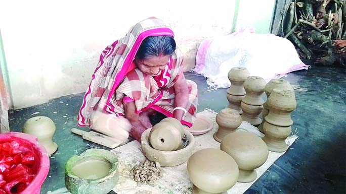 Marking the Pohela Boishakh, potters in Kumarpara of Kulaura Upazila in Moulvibazar are busy making various clay items.