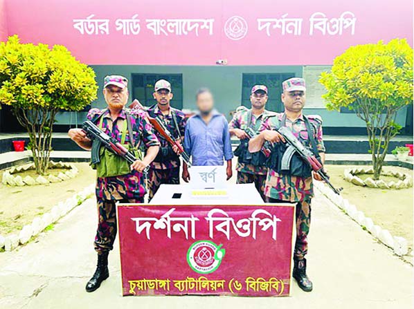 CHUADANGA: Border Guard Bangladesh (BGB) detains a suspected smuggler and recovered 10 gold bars weighing 1.166 kg, valued at approximately Tk 2.48 crore, during an anti-smuggling drive at Darshana Railway Station in Chuadanga on Monday.