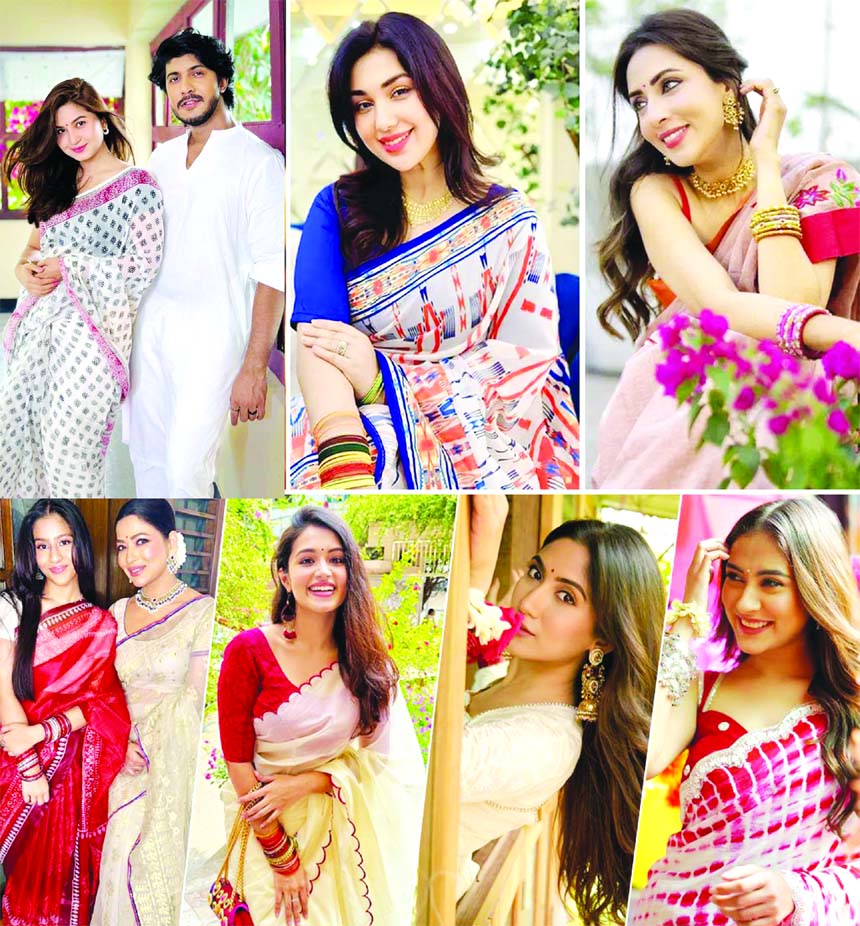 Actresses Tasnia Farin, Safa Kabir, actor Arifin Shuvoo and many others have wished the New Year by sharing multiple photos of themselves in Boishakhi attire.