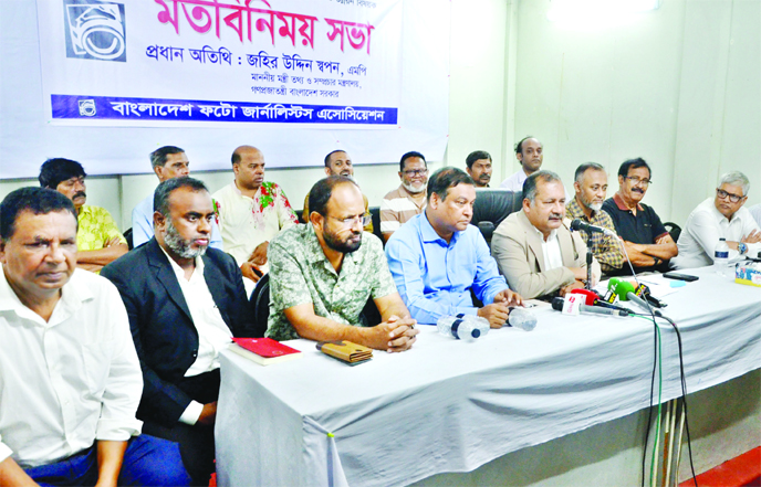 Information and Broadcasting Minister Zahir Uddin Swapon gives speech as chief guest address at a meeting on the professional rights, dignity and development of photojournalists at Purana Paltan in the capital on Wednesday.