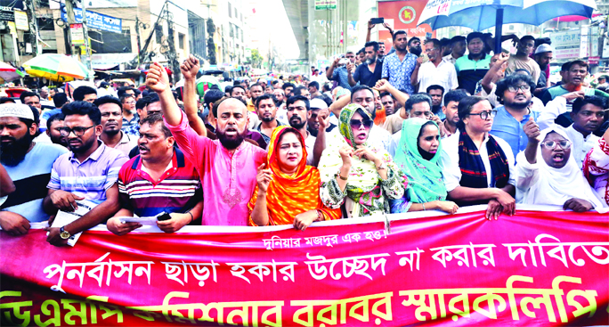 Bangladesh Hawkers’ Union holds a protest procession in Paltan in the capital, submitting a memorandum to the DMP Commissioner demanding no eviction of hawkers without rehabilitation on Thursday.