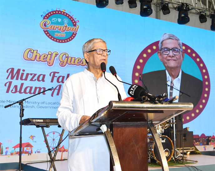Mirza Fakhrul Islam Alamgir speaks as chief guest at the JCI Carnival-2026, held at Pepper Tree BD Event Venue on Madani Avenue in the capital on Friday.