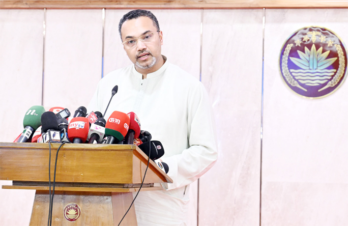 PMO Spokesperson Mahdi Amin briefs the press on the current government's first 60 working days at the Prime Minister's Office in the capital on Saturday.