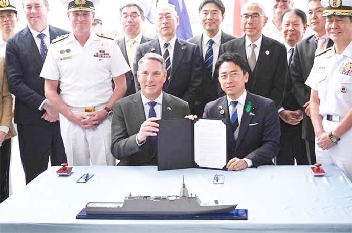 Defense Ministers Richard Marles and Shinjiro Koizumi signed a memorandum “reaffirming the Australian and Japanese governments’ shared commitment to the successful delivery” of the warships, said in statement.