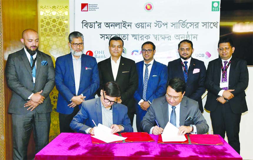 A memorandum of understanding signs between five banks and BIDA's online one-stop service held at the conference room of the Bangladesh Investment Development Authority (BIDA) in Agargaon in the capital on Sunday.