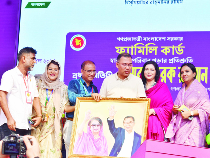 BOGURA: The authorities of Shaheed Zia Degree College in Bagbari, Bogura presents a gift to Prime Minister Tarique Rahman on Monday, expressing their gratitude for the announcement of the college's nationalisation. The tribute was presented by the acting principal of the college,