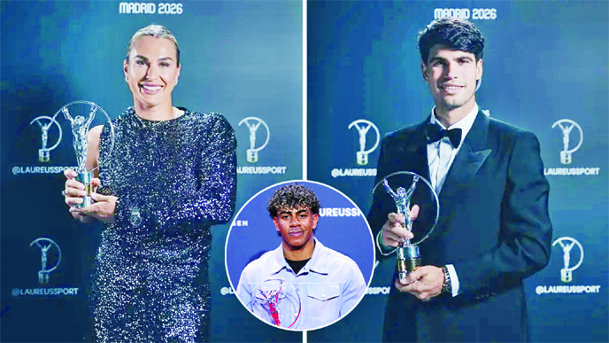Tennis stars Carlos Alcaraz and Aryna Sabalenka were named Sportsman and Sportswoman of the Year at the prestigious Laureus Awards held in Madrid on Monday, recognising their outstanding performances over the past season.