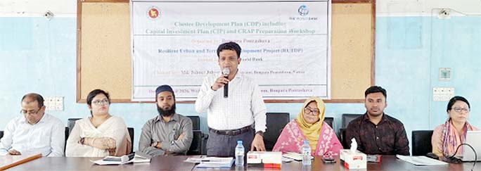 BARAIGRAM (NATORE): Bonpara Municipal Administrator Md. Zubair Jahangir speaks at a workshop on cluster development held in Baraigram Upazila of
