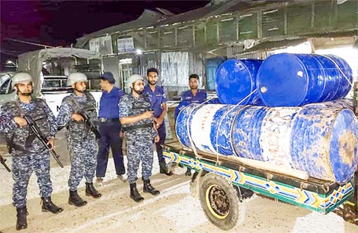 CHATTOGRAM: Bangladesh Navy seizes 1,600 liters of illegally stored diesel in Hatiya on Wednesday during a joint operation, arrests one person and hands over the seized fuel to police for legal action.