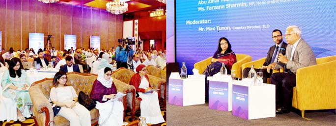 Social Welfare and Women and Children Affairs Minister AZM Zahid Hossain and State Minister Farzana Sharmin take part in a panel discussion at a programme titled “National Care Conclave 2026” at a hotel in the capital on Thursday.