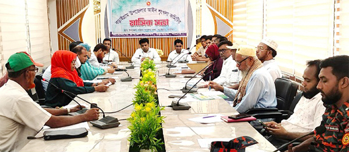 BARAIGRAM (NATORE): Assistant Commissioner (Land) Md. Zubair Jahangir speaks at the monthly meeting of Baraigram Upazila Law and Order Committee held at the Upazila Parishad room on Thursday.