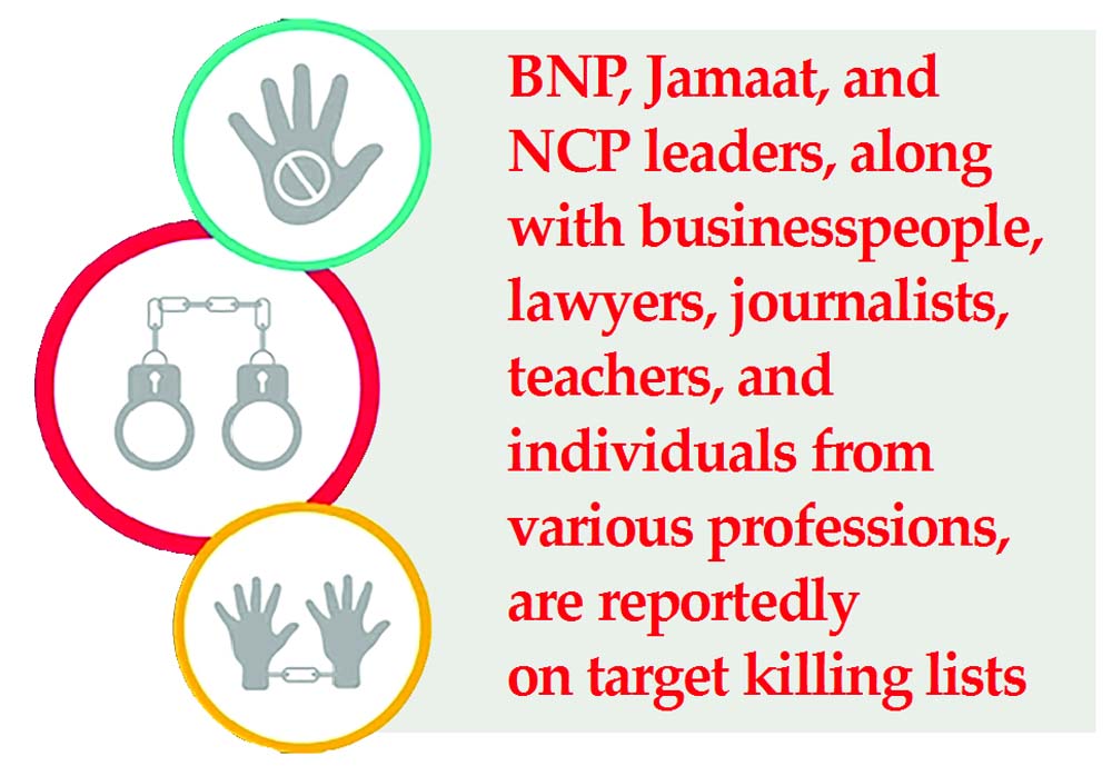 Intelligence agencies have also received information suggesting that individuals from various professional backgrounds, including politicians from BNP, Jamaat-e-Islami, and NCP, as well as businesspeople, lawyers, journalists, and teachers, may be on potential target lists.