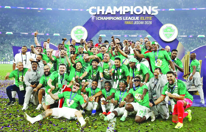 Al-Ahli players celebrate after winning the Asian Champions League title at King Abdullah Sports City Stadium, Jeddah, Saudi Arabia on Saturday.