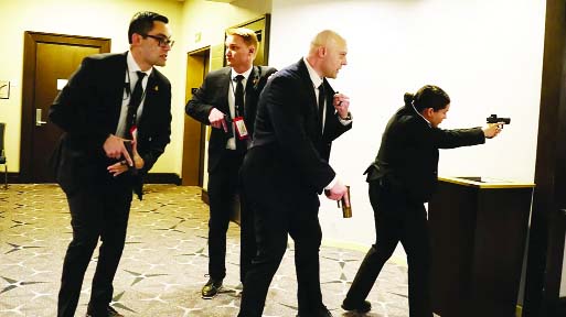 Trump was then rushed from the scene as heavily armed members of his security detail swarmed the table.