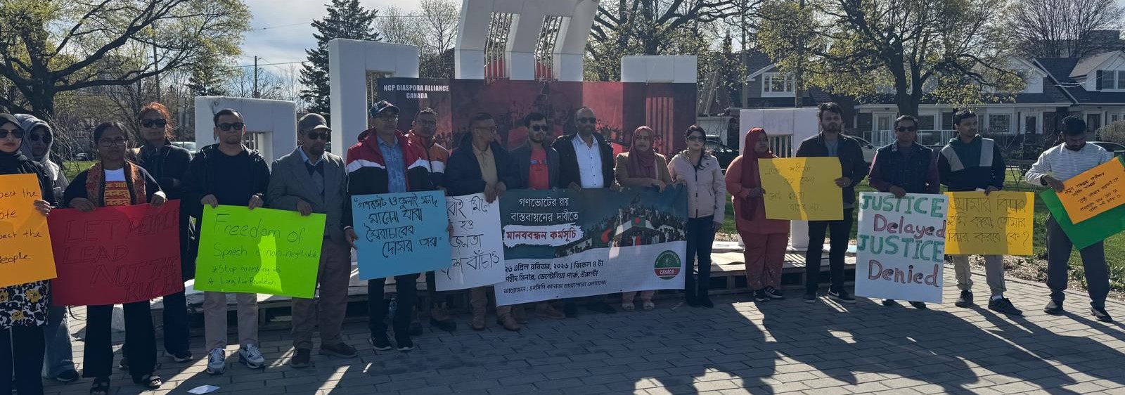 The human chain program was organized in protest against the annulment of the July Charter and the verdict of the referendum. Convenor of NCP-Canada Diaspora Alliance – Rokeya Parveen, Joint Member Secretary Jannat Noor Liza, Chief Organizer Milton Syed Reza,