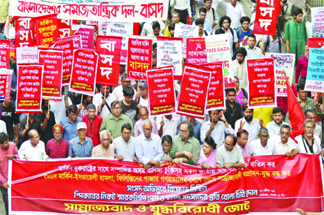 Bangladesh Samajtantrik Dal stages a protest rally in front of Shahbagh in Dhaka on Monday, condemning the ongoing genocide in Palestine.