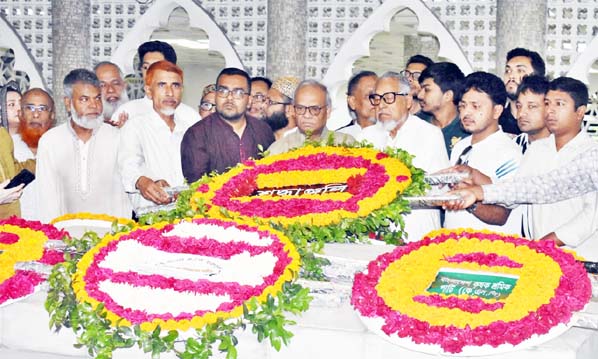 BNP Senior Joint Secretary General and the Prime Minister's Political Adviser Ruhul Kabir Rizvi pays tribute to the graves of Shaheed President Ziaur Rahman and the former Prime Minister Begum Khaleda Zia in the capital on Monday.