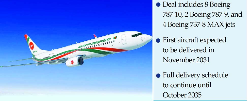 Under the deal, Biman will acquire eight Boeing 787-10 Dreamliners, two Boeing 787-9 Dreamliners, and four Boeing 737-8 MAX aircraft.