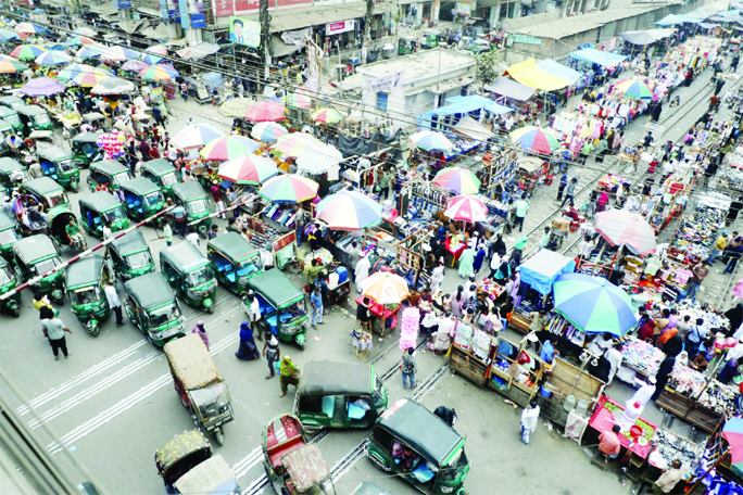 Vendors set up temporary shops on railway tracks every day in the city’s Jurain area, defy the ban, and cause major accidents during train movements. The photo was taken on Thursday.