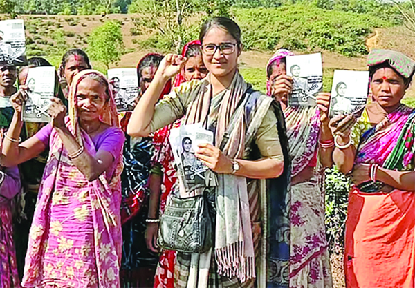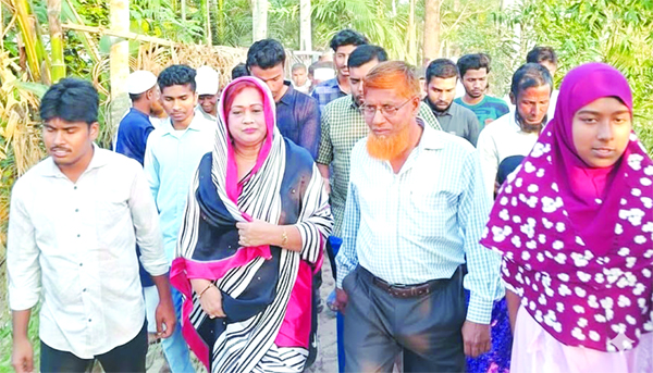 BSD (Marxist) candidate Sadia Noshin Tasnim Chowdhury (Moulvibazar-2) distributes leaflets among the tea workers.