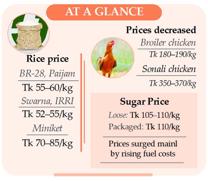 Prices of rice, sugar, eggs and onions have increased in the capital’s markets, while chicken and several vegetables have seen a decline, according to traders...