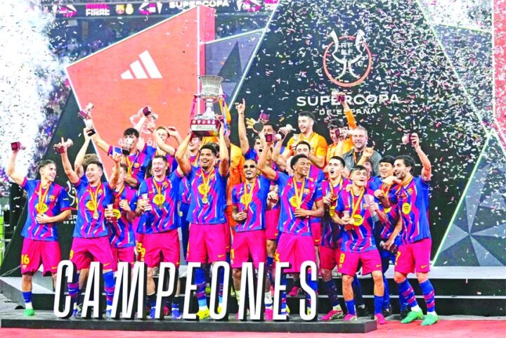 AFP, Jeddah : Barcelona retained the Spanish Super Cup with an entertaining 3-2 Clasico win over Real Madrid in Saudi Arabia on Sunday. Raphinha...