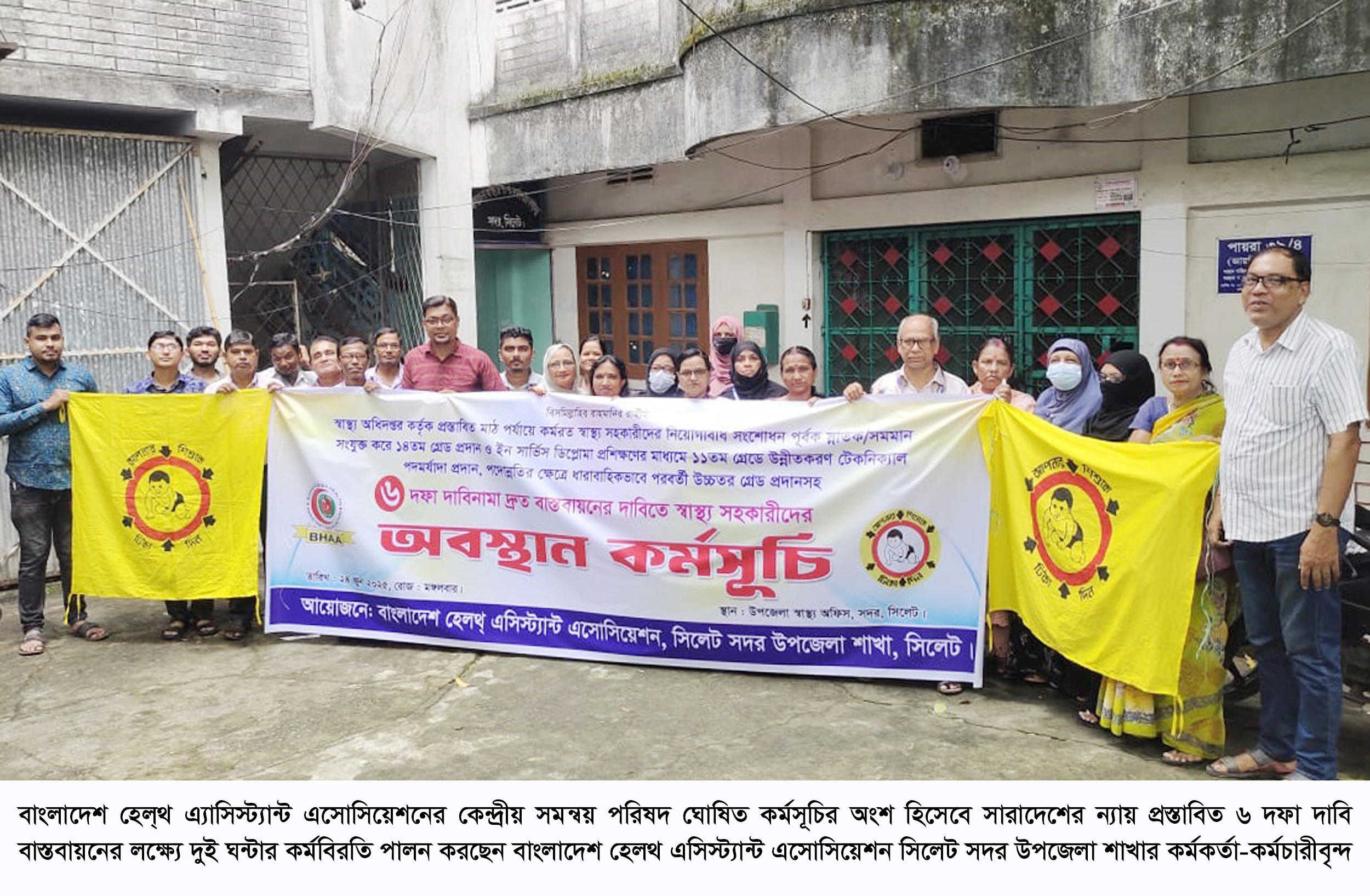 Sylhet Bureau : Members of the Health Assistant Association in Sylhet held a 3-hour sit-in programme from 8 am on Tuesday (July 8). The...
