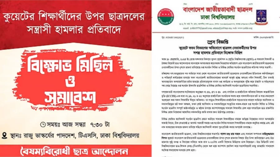 NN Online: After the clash at Khulna University of Engineering and Technology (KUET), the Anti-Discrimination Student Movement and Chhatra Dal are holding counter-protests at Dhaka...