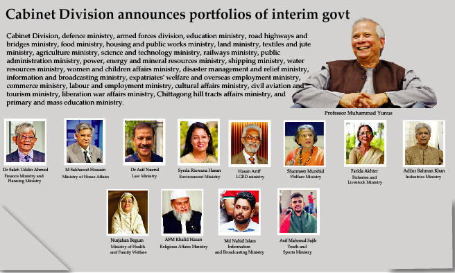 Online Desk : The Cabinet Division has announced the portfolios of the interim government, with Chief Adviser Prof Muhammad Yunus to oversee 27 ministries and...