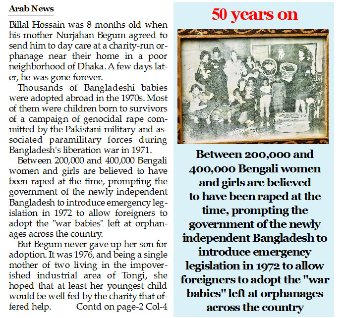Arab News : Billal Hossain was 8 months old when his mother Nurjahan Begum agreed to send him to day care at a charity-run orphanage...