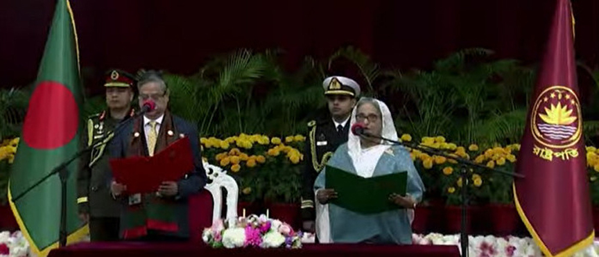 Staff Reporter : Awami League President Sheikh Hasina has taken the oath as Prime Minister of Bangladesh for the fourth consecutive term. President Mohammed Shahabuddin...