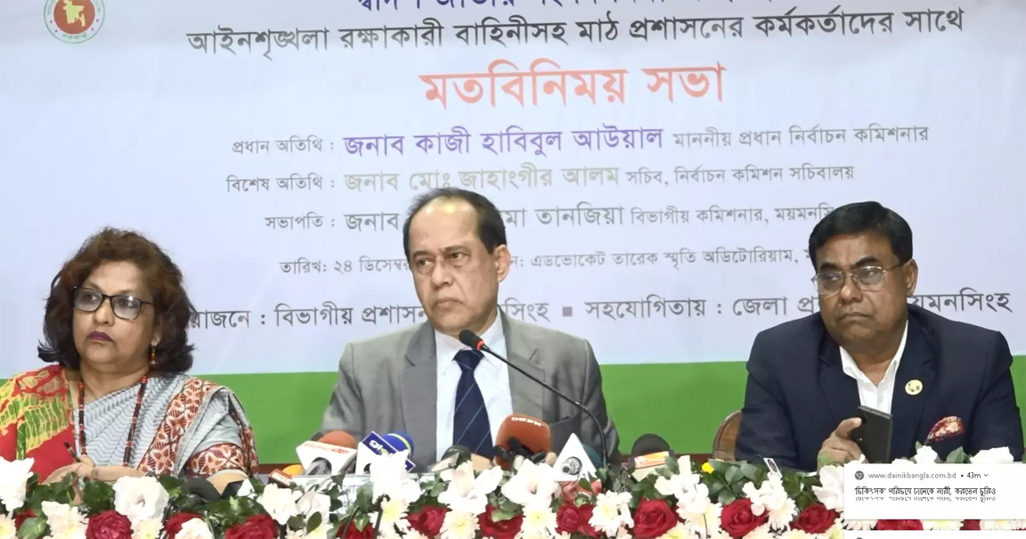 UNB, Mymensingh : Chief Election Commissioner Kazi Habibul Awal on Sunday said the returning officer must take the responsibility inside the polling centres and if...