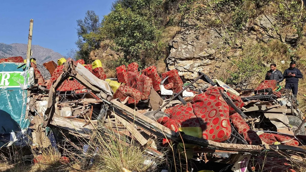AP, SRINAGAR : A passenger bus slid off a Himalayan highway killing at least 37 people and injuring 18 others after rolling down a steep...