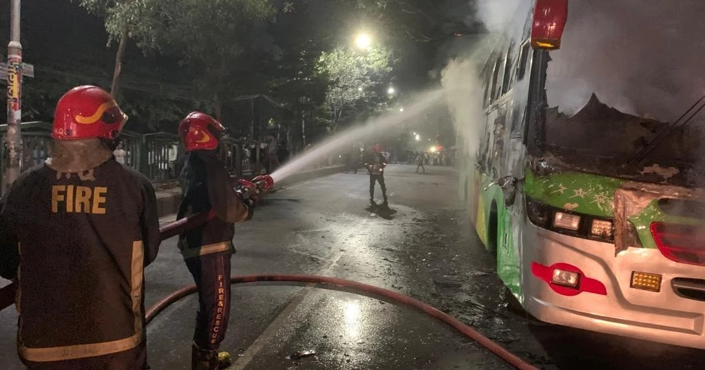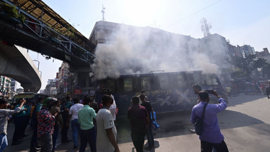 Another bus burned in Dhaka’s Mirpur during ongoing blockade