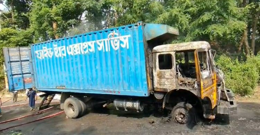 Covered van set on fire in Khagrachhari amid blockade