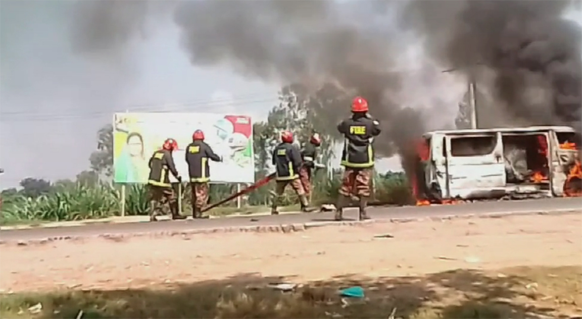 Youth road march: Microbus torched in Natore, private vehicles vandalized