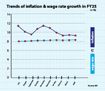 Muhid Hasan : For 39 consecutive months, wage growth for the working class in Bangladesh has remained below the general inflation rate, eroding real incomes...