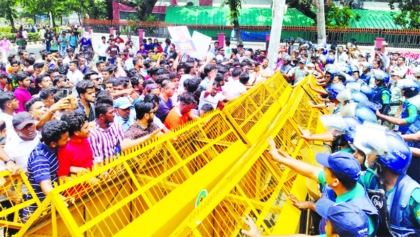 Md Abdur Rakib (JnU) : Students and teachers of Jagannath University (JnU) continued their movement for the second day on Thursday at the entrance of...