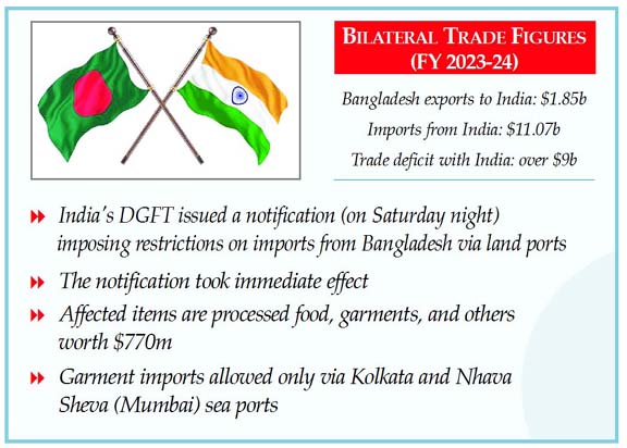 Staff Reporter : Commerce Adviser SK Bashir Uddin has confirmed that Bangladesh has not yet received any official notification from India regarding reported import restrictions...