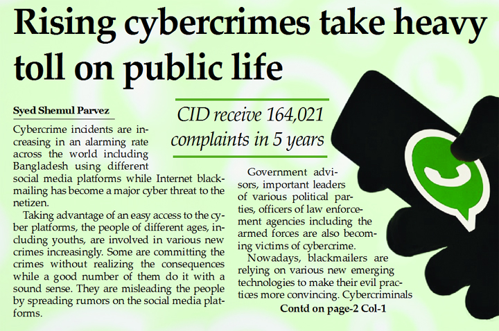 Syed Shemul Parvez : Cybercrime incidents are increasing in an alarming rate across the world including Bangladesh using different social media platforms while Internet blackmailing...